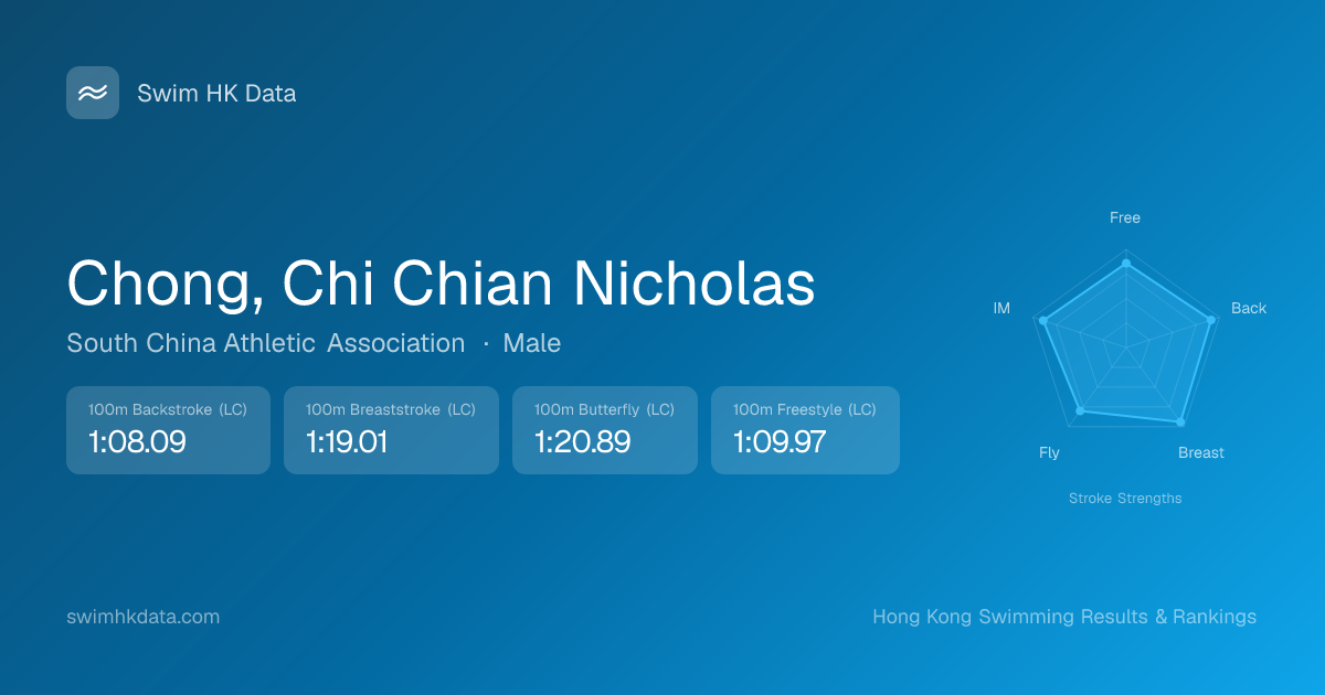 | 100m Breaststroke | 1:09.20 2026-02-10 | 20 | 15 | 2026-02-10 |