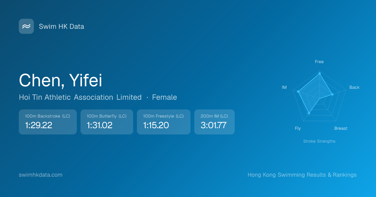 | 100m Freestyle | 1:02.77 2026-03-31 | 1 | 12 | 2026-03-31 |