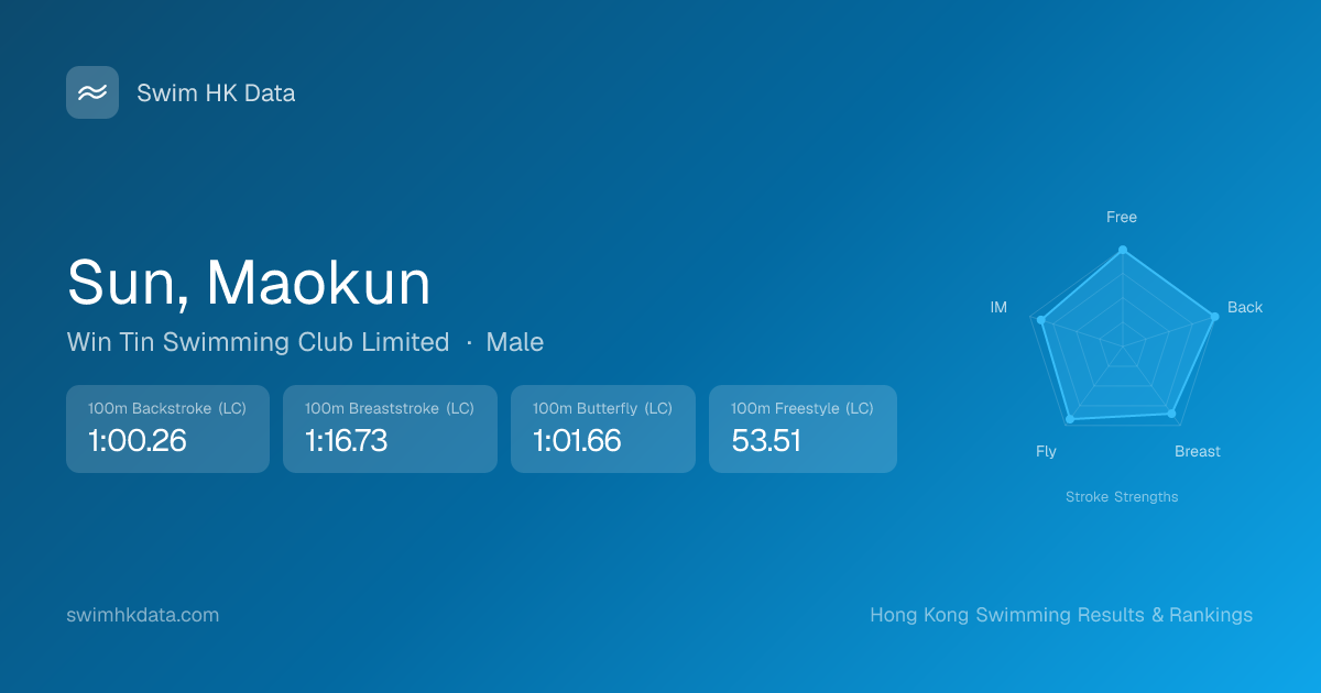 | 100m Freestyle | 53.51 2025-11-03 | 1 | 14 | 2025-11-03 |