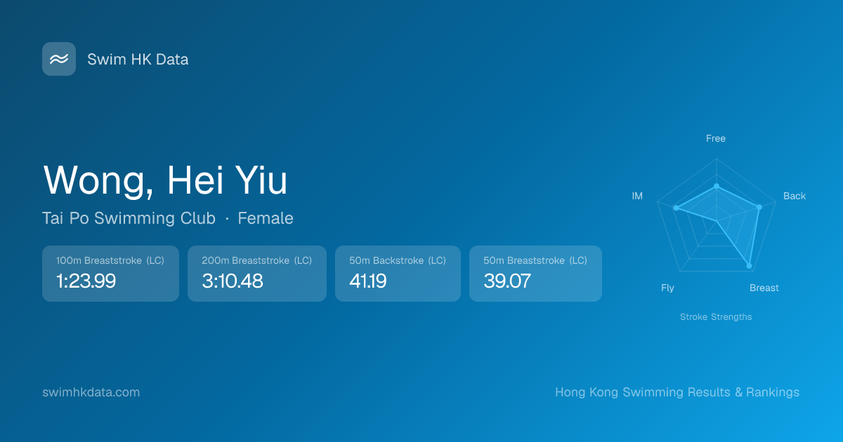 | 50m Freestyle | 33.41 2025-08-27 | 55 | 12 | 2025-08-27 |