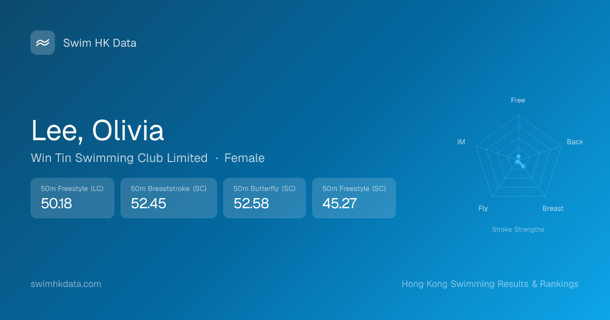 | 50m Freestyle | 50.18 2023-09-25 | 82 | 9 | 2023-09-25 |