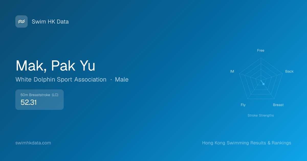 | 50m Breaststroke | 52.31 2023-12-05 | 50 | 10 | 2023-12-05 |