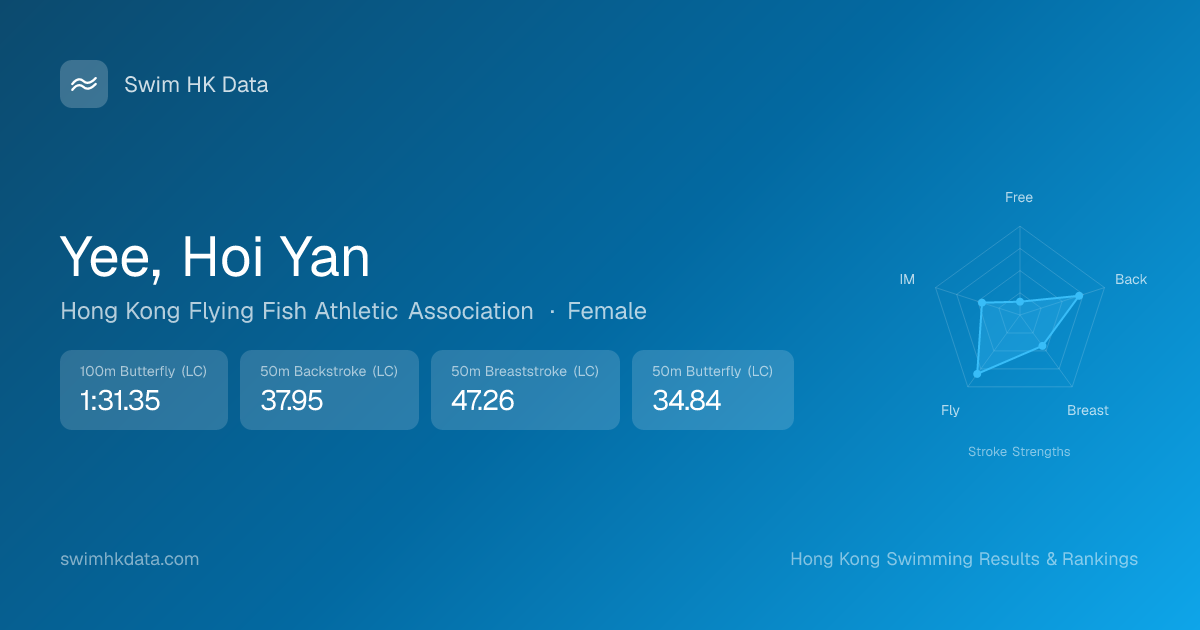 | 50m Butterfly | 34.84 2026-02-02 | 1 | 49 | 2026-02-02 |