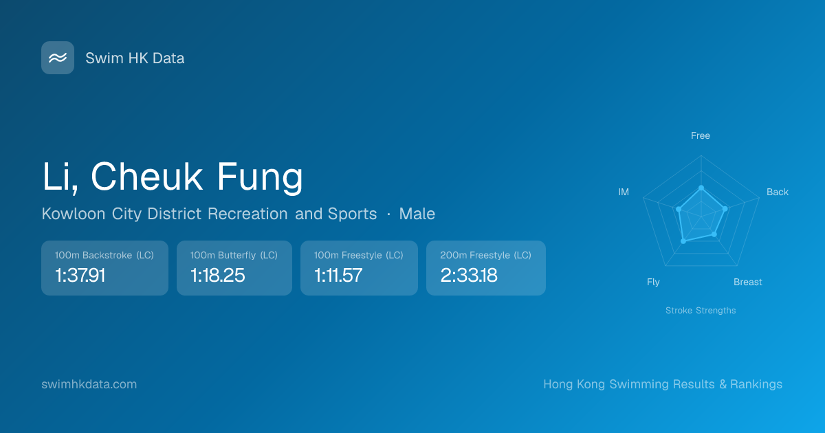 | 50m Butterfly | 34.97 2026-02-10 | 20 | 10 | 2026-02-10 |