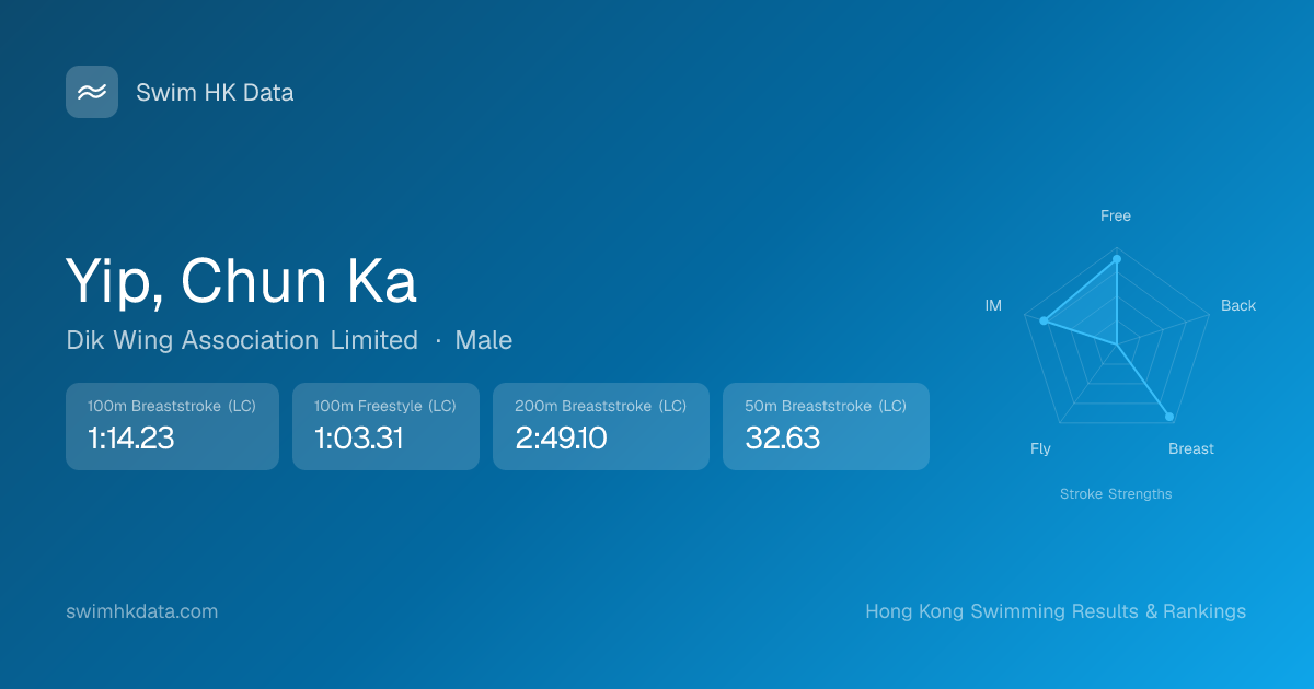 | 100m Breaststroke | 1:14.23 2025-11-03 | 13 | 13 | 2025-11-03 |