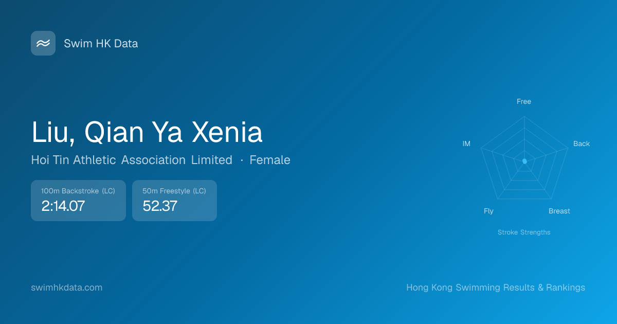 | 50m Freestyle | 52.37 2023-09-25 | 25 | 8 | 2023-09-25 |