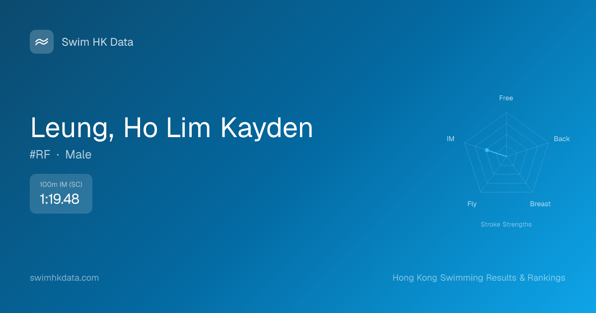 | 100m Individual Medley | 1:19.48 2026-03-31 | 43 | 11 | 2026-03-31 |