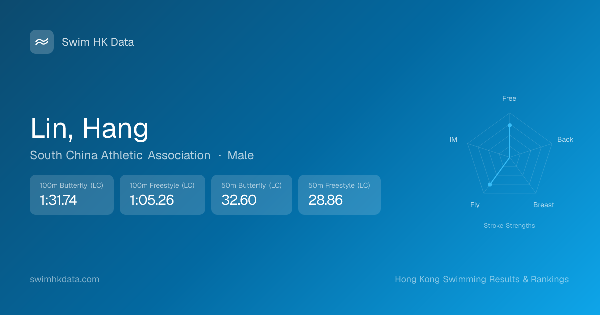 | 50m Freestyle | 28.86 2023-12-04 | 6 | 30 | 2023-12-04 |