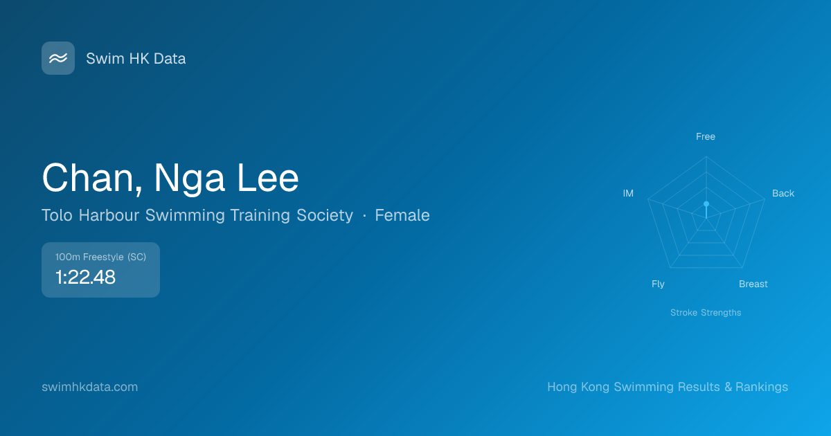 | 100m Freestyle | 1:22.48 2026-03-31 | 88 | 11 | 2026-03-31 |