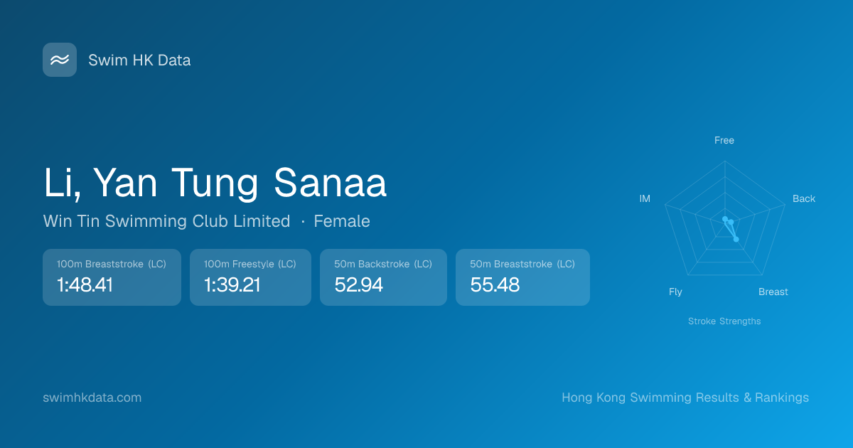 | 100m Freestyle | 1:39.21 2024-06-22 | 20 | 11 | 2024-06-22 |