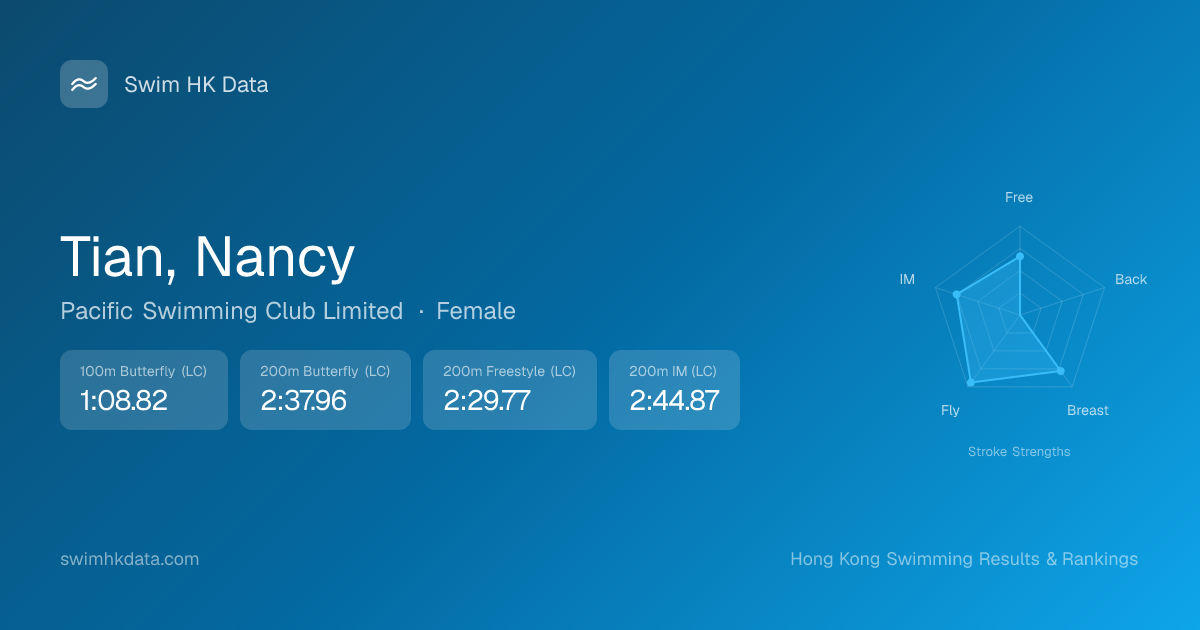 | 100m Butterfly | 1:05.84 2026-02-10 | 6 | 15 | 2026-02-10 |