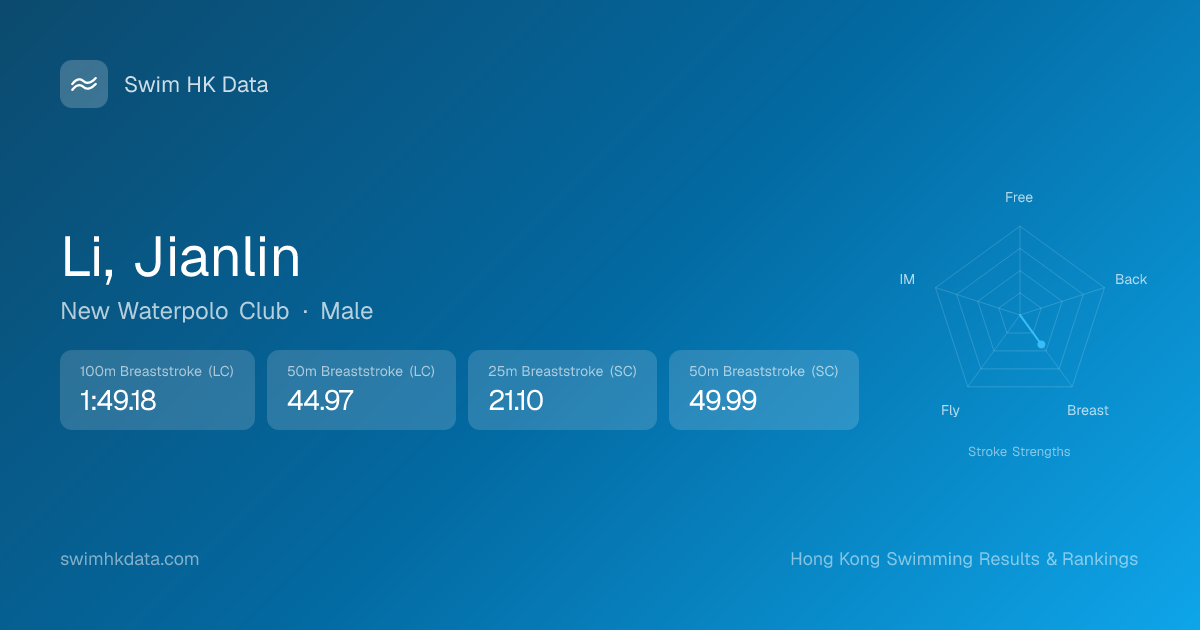 | 50m Breaststroke | 44.97 2023-12-04 | 2 | 63 | 2023-12-04 |