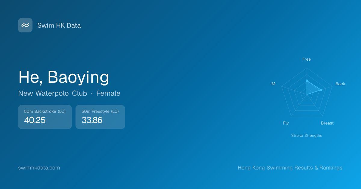 | 50m Backstroke | 40.25 2023-12-04 | 3 | 29 | 2023-12-04 |