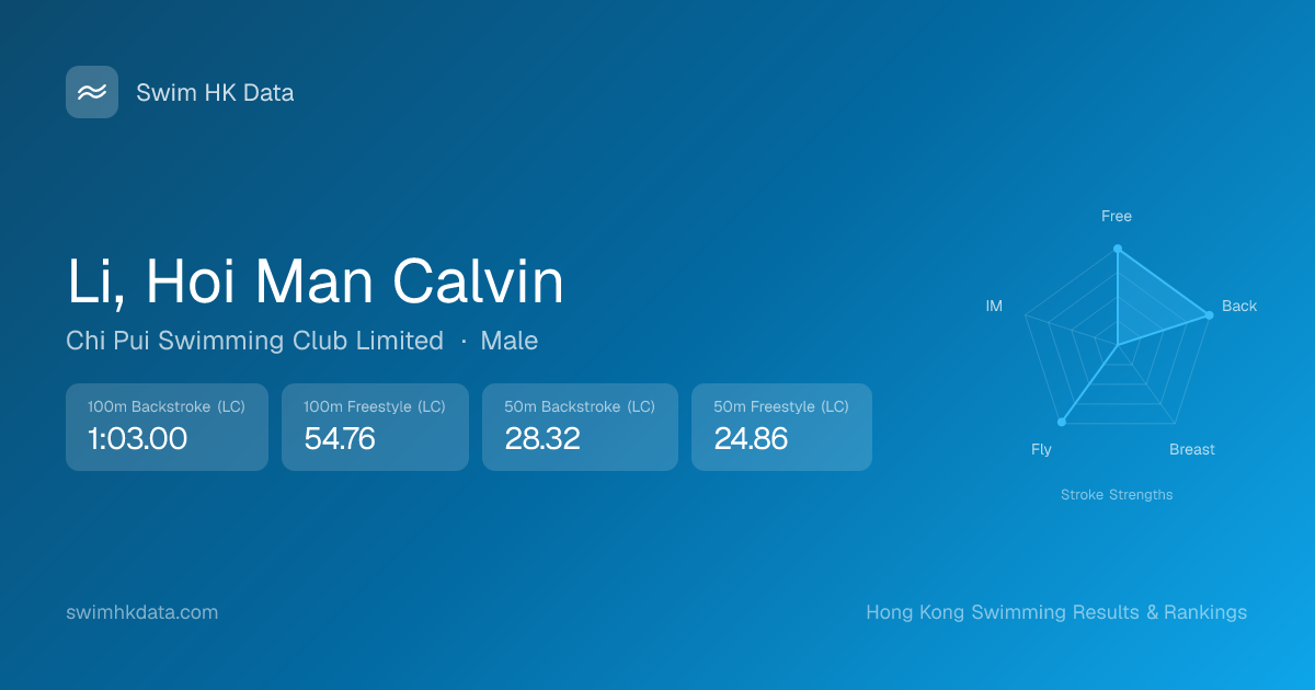 | 100m Freestyle | 50.87 2026-02-10 | 1 | 17 | 2026-02-10 |