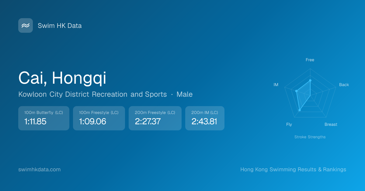 | 100m Butterfly | 1:10.75 2025-02-10 | 1 | 10 | 2025-02-10 |