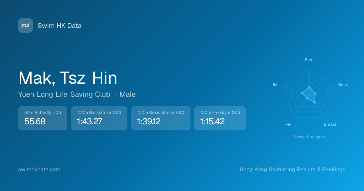 | 50m Backstroke | 43.96 2026-03-04 | 92 | 11 | 2026-03-04 |