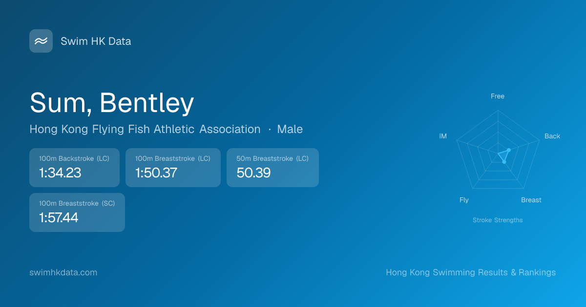| 100m Backstroke | 1:34.23 2025-08-27 | 55 | 10 | 2025-08-27 |