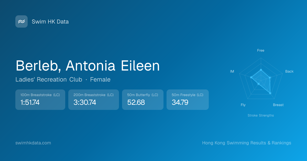 | 50m Freestyle | 34.79 2025-08-27 | 73 | 12 | 2025-08-27 |