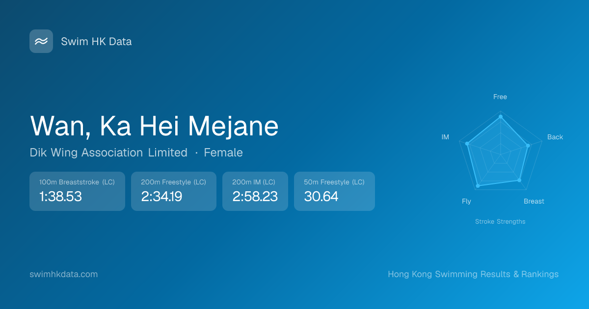 | 50m Freestyle | 29.19 2026-02-10 | 19 | 13 | 2026-02-10 |