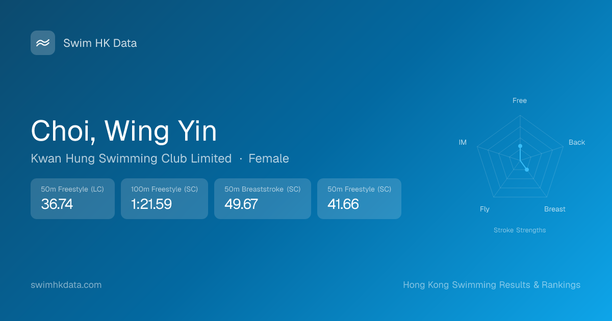 | 50m Breaststroke | 49.67 2024-12-23 | 45 | 10 | 2024-12-23 |