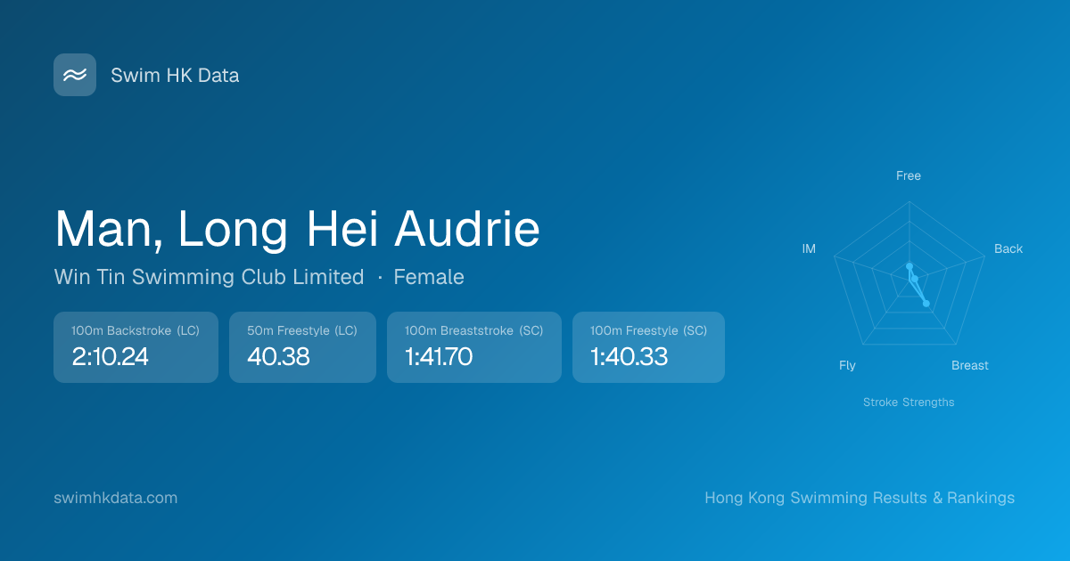 | 50m Breaststroke | 48.73 2026-02-06 | 48 | 9 | 2026-02-06 |