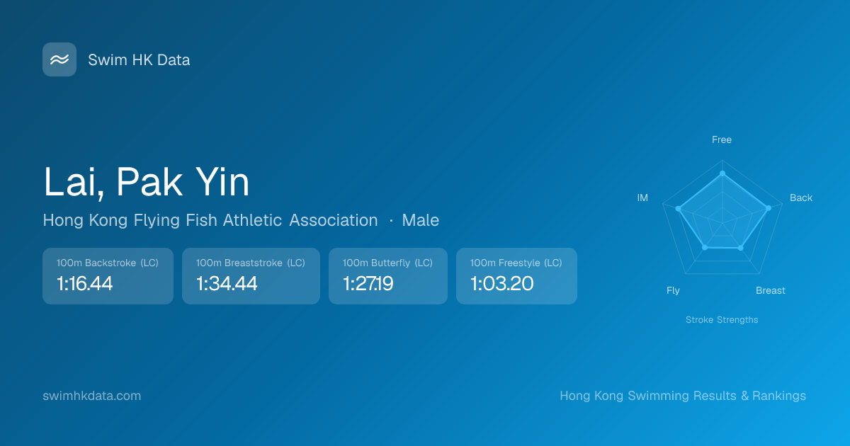| 50m Backstroke | 34.14 2024-10-02 | 17 | 12 | 2024-10-02 |