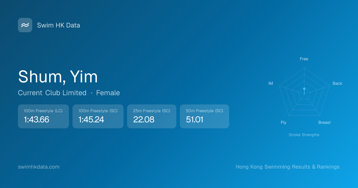 | 25m Freestyle | 22.08 2026-01-20 | 11 | 55 | 2026-01-20 |