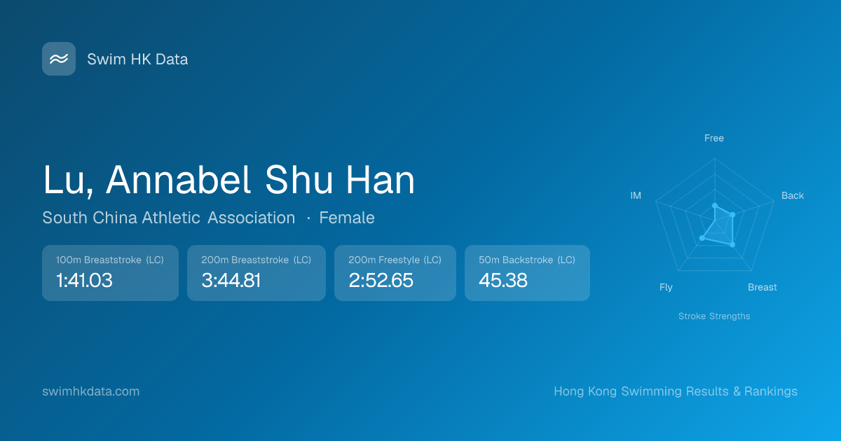| 50m Butterfly | 39.92 2026-02-06 | 64 | 11 | 2026-02-06 |
