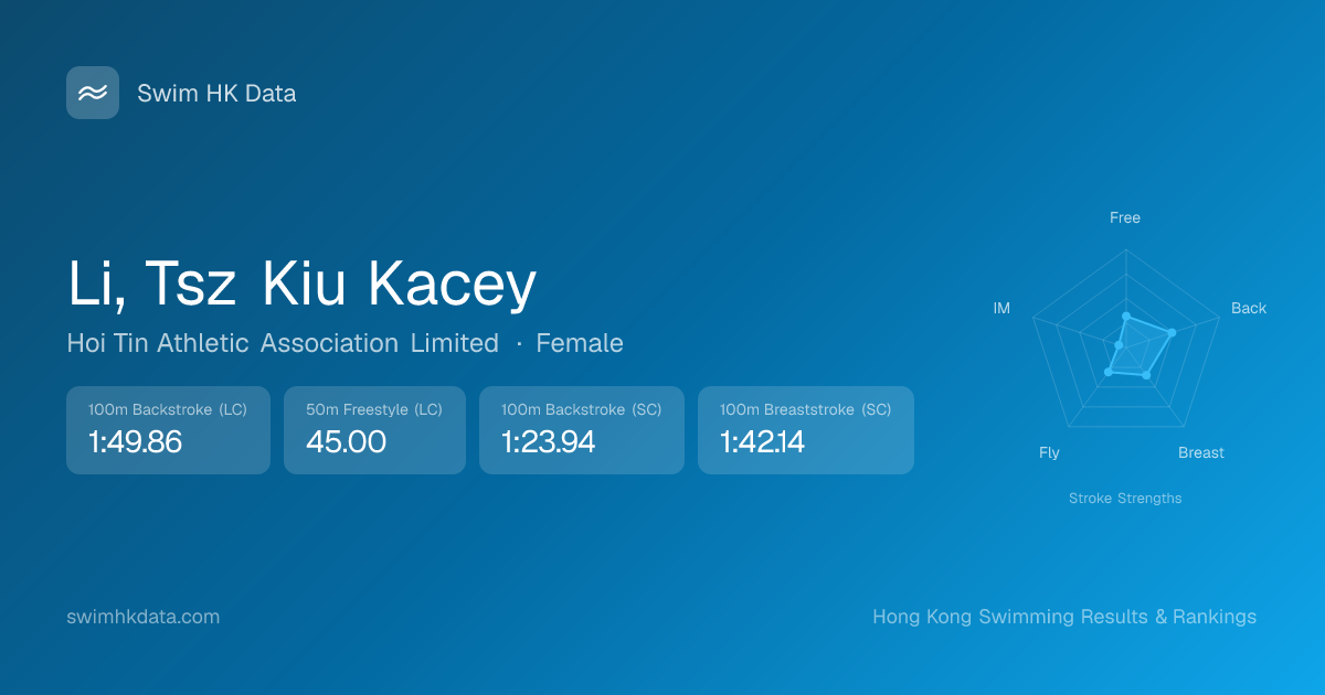 | 50m Butterfly | 40.87 2026-02-06 | 6 | 8 | 2026-02-06 |
