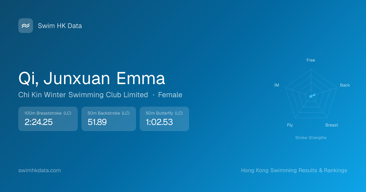 | 50m Backstroke | 51.89 2024-06-22 | 34 | 9 | 2024-06-22 |