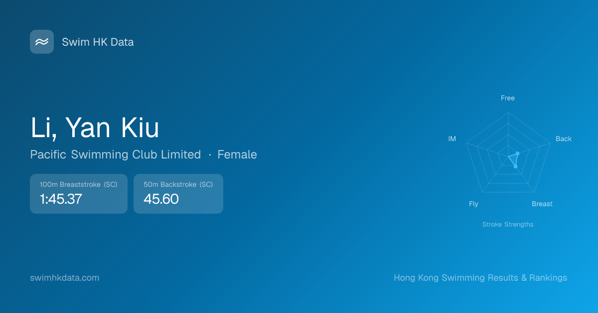 | 100m Breaststroke | 1:45.37 2026-03-04 | 39 | 10 | 2026-03-04 |