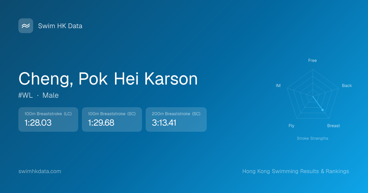 | 200m Breaststroke | 3:13.41 2026-03-16 | 34 | 11 | 2026-03-16 |