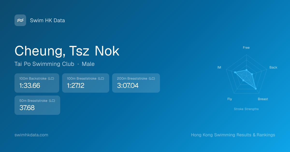 | 50m Breaststroke | 35.94 2026-02-10 | 12 | 12 | 2026-02-10 |
