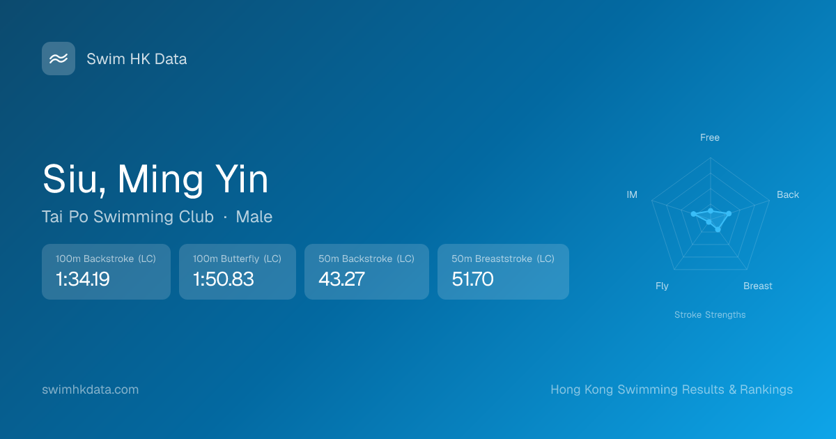 | 100m Individual Medley | 1:26.92 2026-03-31 | 42 | 10 | 2026-03-31 |