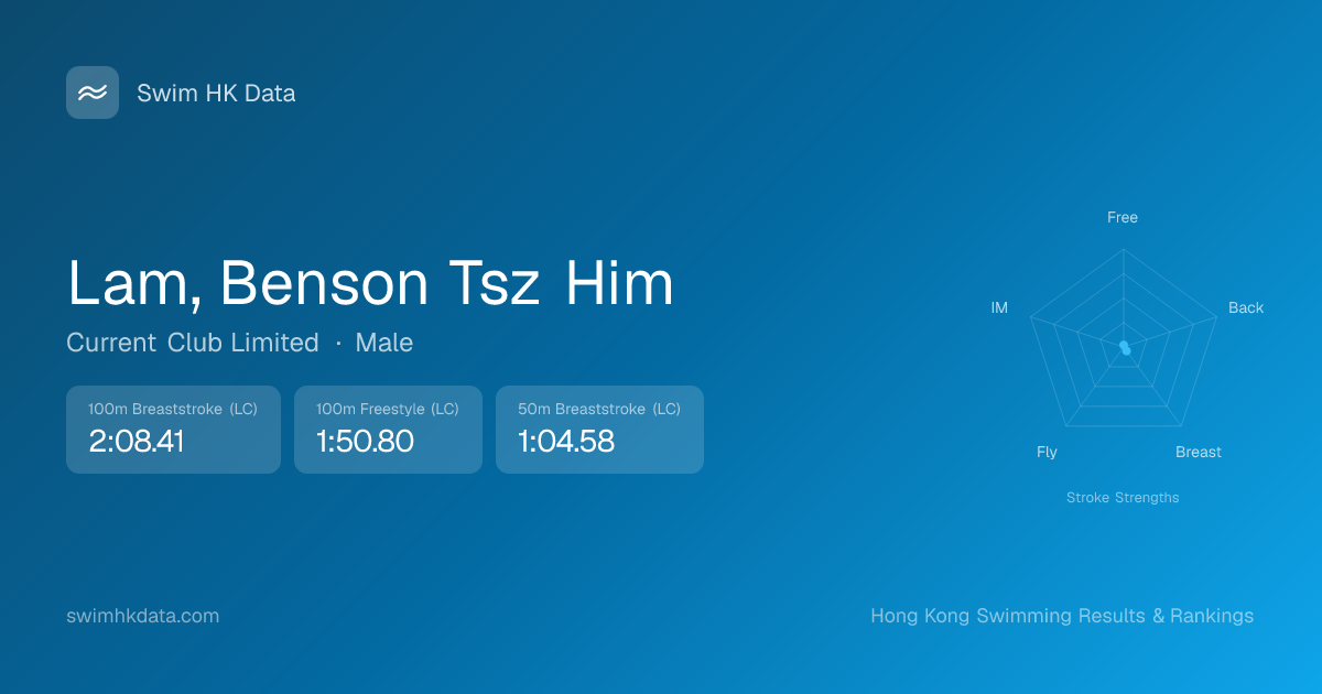 | 100m Breaststroke | 2:08.41 2025-05-12 | 30 | 9 | 2025-05-12 |