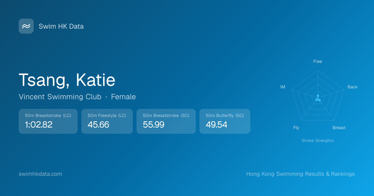 | 50m Butterfly | 49.54 2024-12-23 | 23 | 8 | 2024-12-23 |