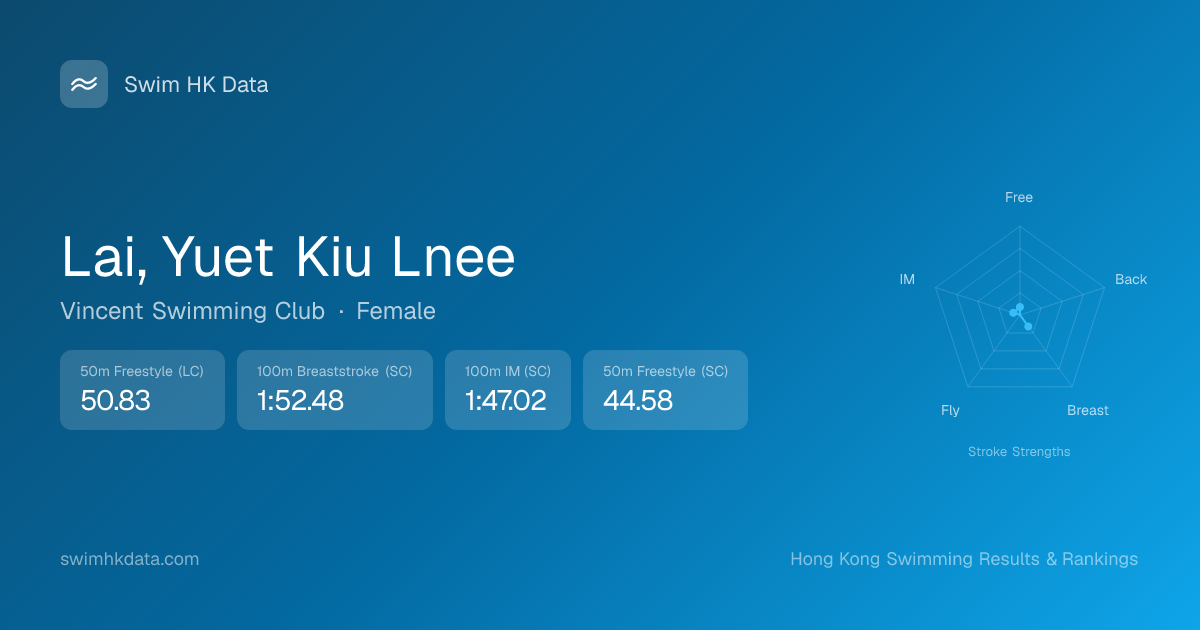 | 100m Individual Medley | 1:47.02 2026-03-31 | 33 | 8 | 2026-03-31 |
