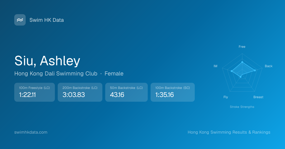 | 50m Backstroke | 43.16 2025-06-09 | 18 | 10 | 2025-06-09 |