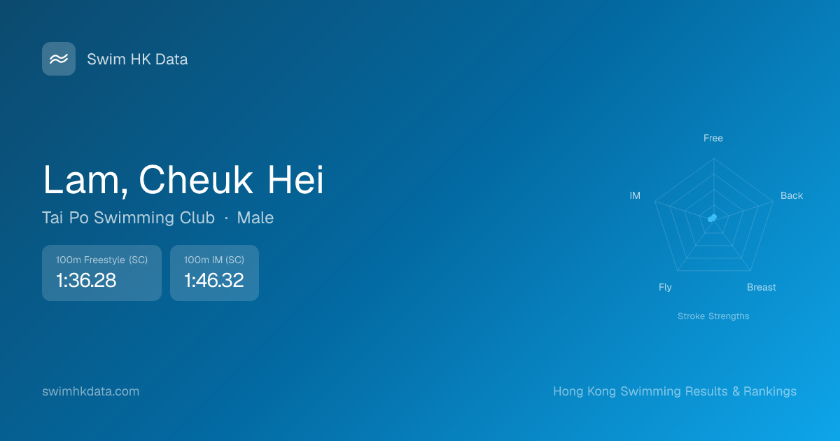 | 100m Freestyle | 1:36.28 2026-03-31 | 146 | 12 | 2026-03-31 |