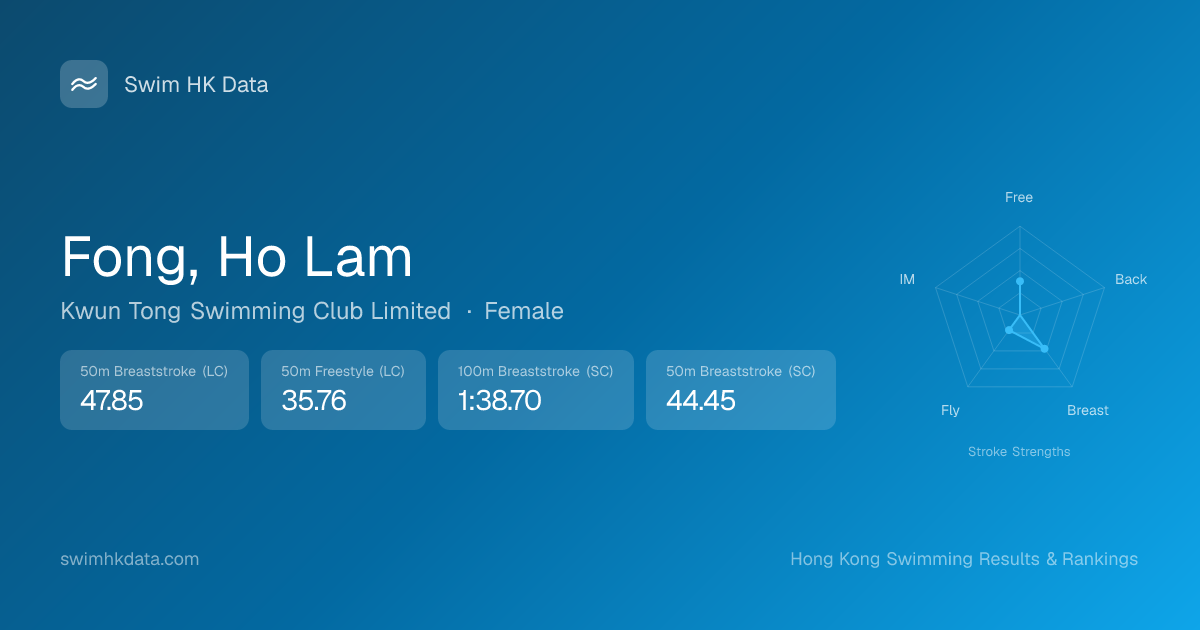 | 50m Breaststroke | 44.45 2026-02-06 | 17 | 10 | 2026-02-06 |