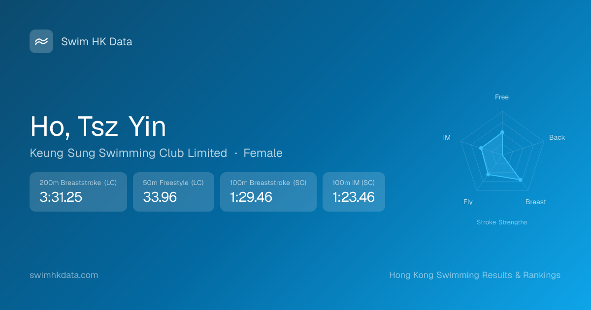 | 50m Freestyle | 33.96 2025-08-27 | 37 | 16 | 2025-08-27 |