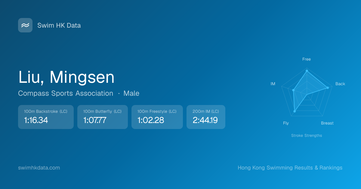 | 100m Butterfly | 1:04.75 2025-12-29 | 44 | 15 | 2025-12-29 |
