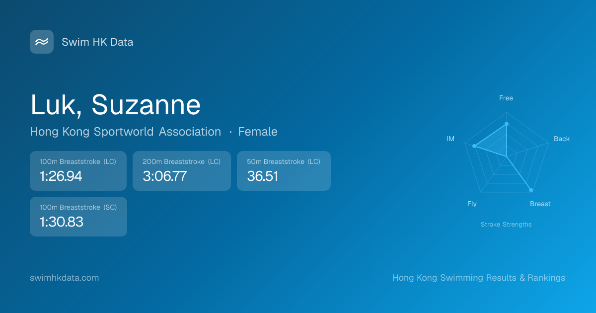 | 50m Breaststroke | 34.99 2026-02-10 | 2 | 12 | 2026-02-10 |