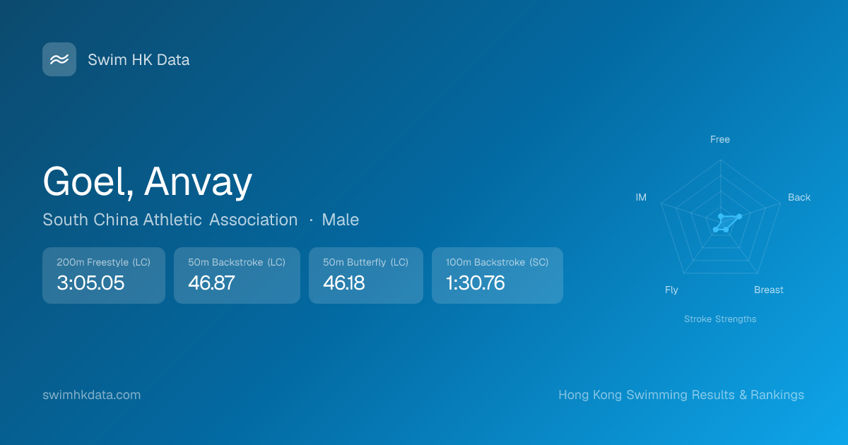 | 50m Backstroke | 46.87 2025-06-09 | 43 | 9 | 2025-06-09 |