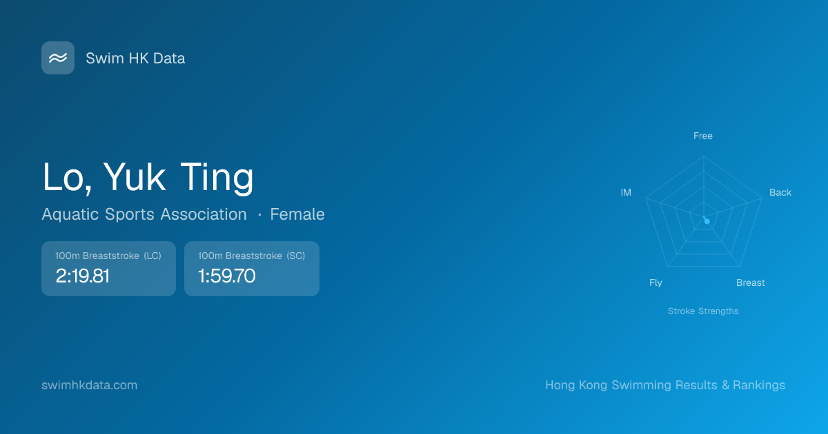 | 100m Breaststroke | 1:59.70 2026-03-04 | 95 | 10 | 2026-03-04 |