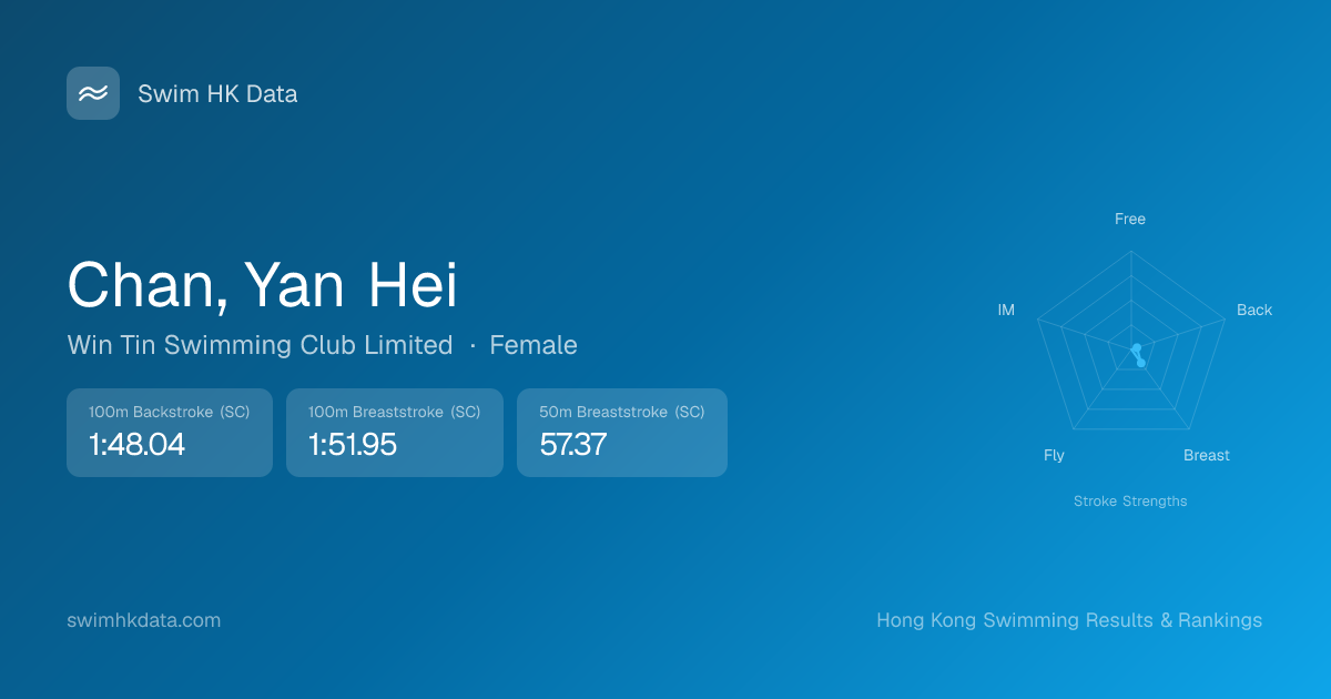 | 100m Breaststroke | 1:51.95 2025-02-24 | 80 | 10 | 2025-02-24 |