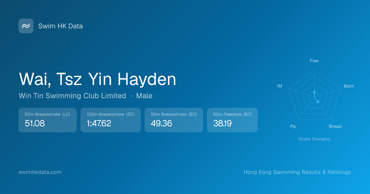 | 50m Freestyle | 38.19 2026-03-04 | 129 | 9 | 2026-03-04 |