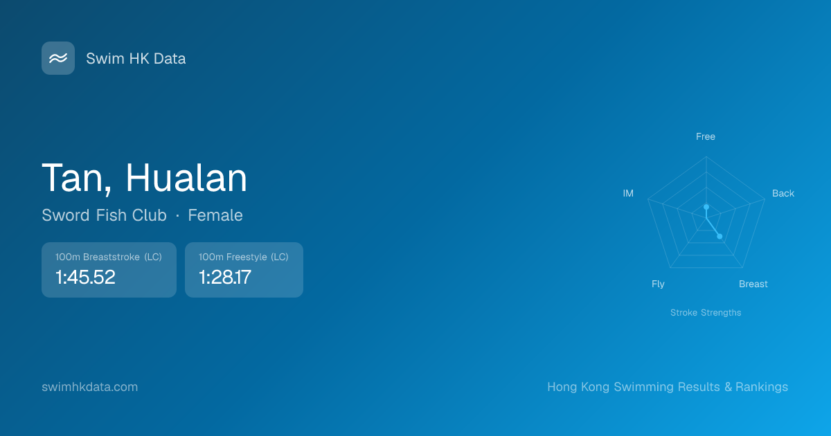 | 100m Freestyle | 1:28.17 2026-02-02 | 5 | 29 | 2026-02-02 |