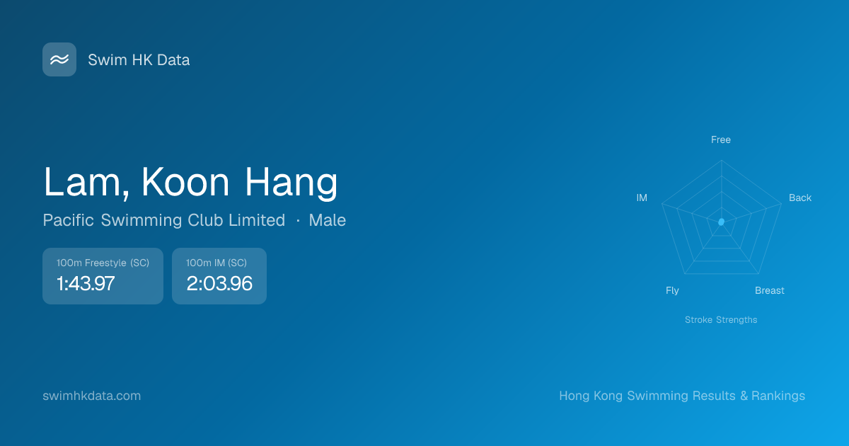 | 100m Freestyle | 1:43.97 2025-03-26 | 116 | 13 | 2025-03-26 |