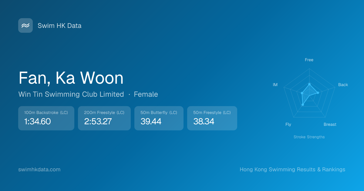 | 50m Freestyle | 34.73 2026-03-16 | 23 | 10 | 2026-03-16 |